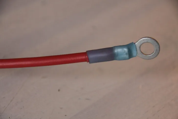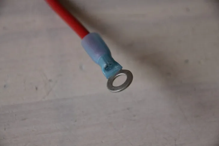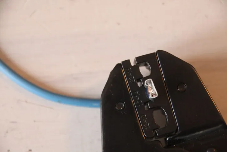 Idealiter gebruik je de beste kwaliteit spullen voor alle klussen aan boord. Inclusief het beste gereedschap. Soepel, volledig vertind draad, dikke, vertind koperen kabelschoenen met transparante, lijmende krimpkous en een trekontlasting op de kabel. Geknipt met een kabelschaar (papagaaienbektang) voor een mooi rond en vlak resultaat, gestript met een officiële tang waarmee alle draadjes heel blijven. Gekrompen met een degelijke krimptang, waardoor het de kabelschoen zich netjes om de aders sluit. Even de kous krimpen met een heteluchtpistool en de waterdichte verbinding is gemaakt.