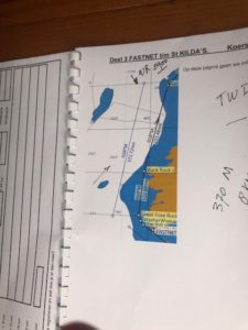 De vooruitzichten voor de eerste dagen zijn, voor wat je hier kunt hebben, prima. We plannen in rakken vooruit. Voor St. Kilda, een stuk van 375 mijl, hebben we een ETA (Estimated Time of Arrival, NL: verwachte aankomst red.) ongeveer 09.00 uur op vrijdag. De verwachting is een wind tussen de 22 en 28 knopen variërend in richting tussen zuidwest en west. Het volgende stuk van 300 mijl naar de Shetlands lijkt het wat vervelend te gaan worden. Weliswaar uit het zuidwesten, maar naar verwachting met vlagen tot ruim 40 knopen.