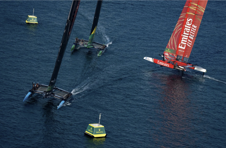 Slingsby en zijn Australiërs leken onderweg naar een historische vierde titel. Ze nailden de start en sloegen meteen een flinke voorsprong. Halverwege de race pakte Nieuw-Zeeland de leiding na een gunstige shift, maar in het beslissende derde deel was het Emirates GBR dat het best met de rare windbanen langs de wal omging. De Britten wipten erlangs, sloegen een gaatje en gaven dat niet meer weg.