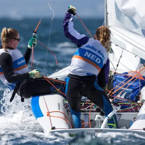 In de 49erFX komen kernploegzeilsters Annemiek Bekkering en Annette Duetz niet in actie in Hyères. Het team van Nina Keijzer en Claire Blom, dat recent de nationale selectie won van het eerder genoemde duo, doen wel mee en staan na twee races 25e.
