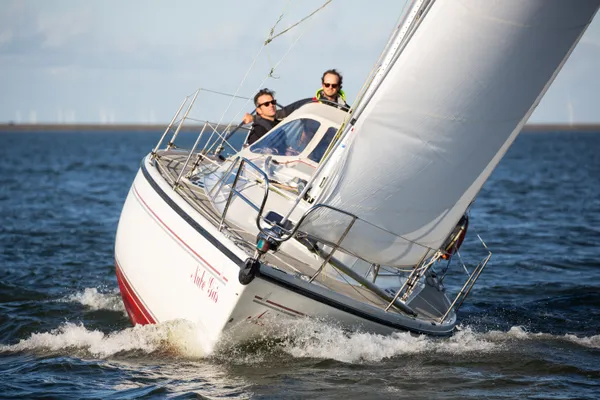 De grootschootoverloop werkt uitstekend, net als het Easymatic grootschootsysteem. Met dat systeem kun je ervoor kiezen om beide werkende einden door de klem te trekken voor beperkte vertraging en snel inhalen of om één eind aan te trekken voor een grotere reductie van de krachten. In de vlagen helt de boot tot maximaal 25 graden en loeft hij slechts enkele graden op. Mede door het lage vrijboord is het overzicht goed en is het een plezier om met de boot te zeilen.