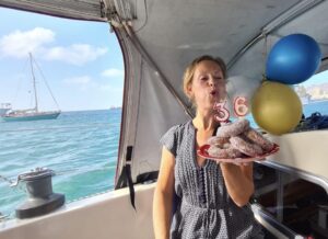De 21e ben ik jarig, de eerste verjaardag van huis. Eigenlijk vier ik het nooit echt. Collega’s waren vaak vrij zo vlak voor de feestdagen; familie, vrienden en wijzelf in de kerststress; of auto’s bleven thuis vanwege sneeuw. Vroeger, toen het nog sneeuwde in Nederland. Maar dit jaar kom ik er niet onderuit, zo bleek ‘s ochtends al. De bekende squad roept ons op via de marifoon. “Ja, Black Moon hier, over,” antwoord ik. “Lang zal ze leven, lang zal ze leven…,” zingen ze (bijna) synchroon. En wanneer we terugkomen van belletjes met het thuisfront blijkt Black Moon versierd te zijn met slingers en ballonnen. Een perfecte verjaardag op onze party boat!