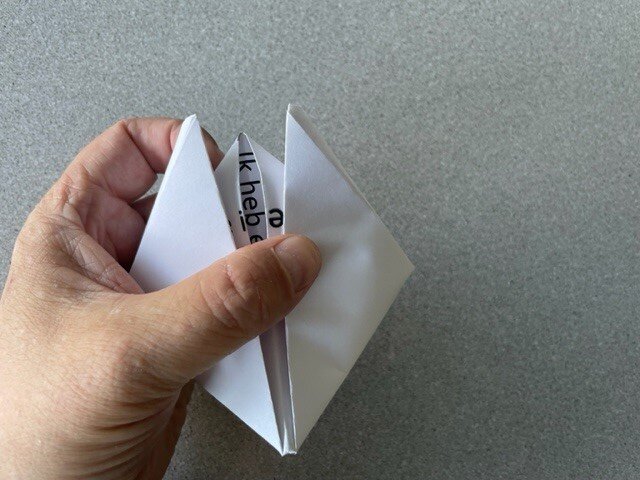 - Je hebt nu een trek het weer open vanuit de binnenzijde en aan de buitenzijde ontstaan 2 punten, trek die open en je bootje is klaar