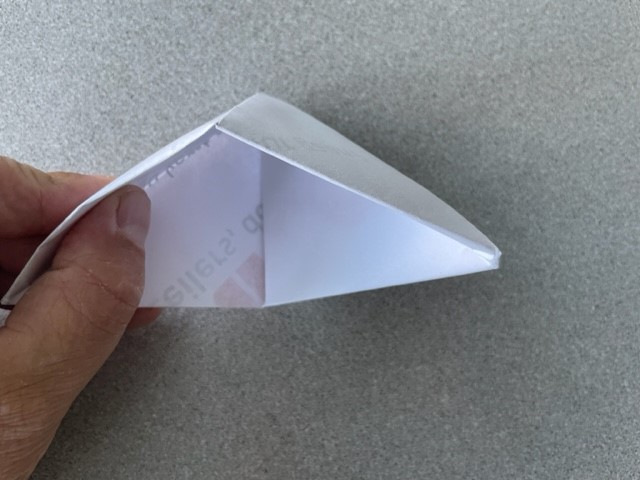 - Vouw de onderkant omhoog aan beide zijden zodat een driehoek ontstaat
