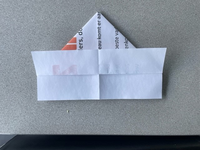 - De onderflap vouw je nu naar boven aan beide zijden. Je hebt nu een hoedje
