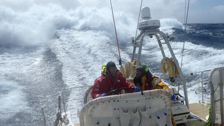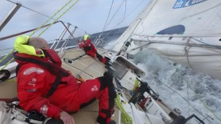 Het einde van de etappe naar Seattle komt in zicht en ik moet zeggen dat ik er eigenlijk ook wel even klaar mee ben. Gisteravond trok de zoveelste storm over ons heen, een secondary low om precies te zijn. Dat is dubbel feest, want die zijn vaak krachtiger dan hun voorganger. De windsnelheid kwam ook nog eens flink hoger uit dan verwacht en zodoende ging het plan om het derde rif op te houden niet door. We zijn de nacht doorgezeild met alleen de stormjib aan de innerforestay, net op het moment dat we aan de Ocean Sprint begonnen. Nadat we het grootzeil en de giek met flink wat lijnen aan het dek vastgesjord hadden was het met twee handen stevig aan het roer in principe goed te doen.